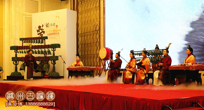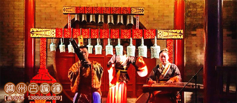 1、小型演出:一般由12-15件編鐘、編磬等配套樂器進行表演,編鐘總長度不超過2.2米,配備1-4名樂師進行演奏,舞臺要求3*3米以上,有伴奏音樂配合演出,適合室內(nèi)小型宴會、展會等環(huán)境使用。