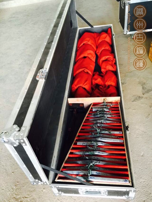 專門為13件漢式編鐘及20件漢式編磬配套的航空舞美道具箱,可用于航空運(yùn)輸。