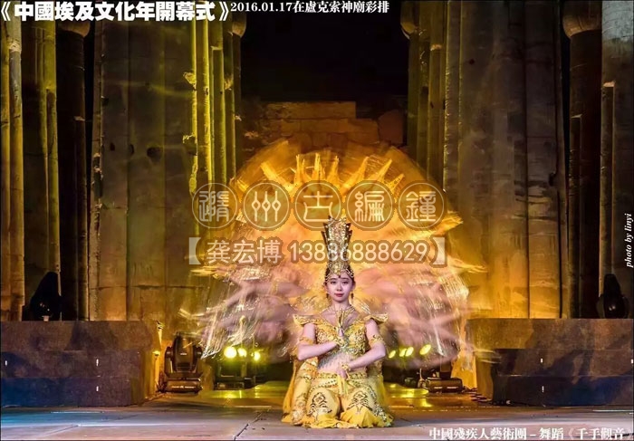 埃及當(dāng)?shù)貢r(shí)間2016年1月21日,國家主席習(xí)近平和埃及總統(tǒng)塞西在古老的盧克索神廟廣場共同出席中埃建交60周年慶?;顒?dòng)暨2016中埃文化年開幕式。湖北省歌舞劇院進(jìn)行編鐘表演禮樂《金石合鳴》。