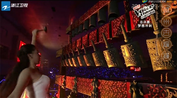 古編鐘公司受節(jié)目組委托將一套中型青銅編鐘運(yùn)達(dá)活動(dòng)現(xiàn)場(chǎng),參加好聲音北京總決賽的開場(chǎng)部分,晚會(huì)以敲擊中國(guó)2400多年前的編鐘之聲開場(chǎng),寓意中國(guó)文化底蘊(yùn)豐厚,好聲音自古傳今,節(jié)目由此發(fā)掘出中國(guó)眾多好聲音學(xué)員,開創(chuàng)新一代造星之路。